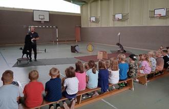 In der großen Turnhalle der Ludwig Gleim Schule zeigte uns Janko (der Trainer) in 2 Stunden mit zwei Hunden, einem Papagei, einer Spinne und einer Schlange, was sie alles für Kunststücke geübt haben und wie toll man Tiere mit bestimmten Tricks und Tipps trainieren kann.