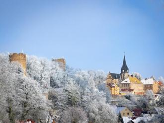 Raureif macht Burgtürme in Kohren-Sahlis zu einem Hingucker-Foto