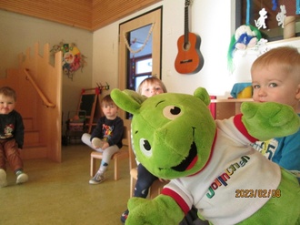 Im Rahmen des AOK „Jolinchen“- Projekts, das aus drei Modulen besteht, haben sich die Erzieher*innen der Kita als ersten Projektbaustein das Thema „gesunde Ernährung“ ausgewählt. Dazu fand an einem Samstag im September 2022 ein eintägiger Workshop zur Schulung der Erzieher*innen statt. Dabei bearbeitet jede Gruppe in den nächsten Monaten das Projekt individuell nach den Interessen und dem jeweiligen Entwicklungsstand der Kinder. Gemeinsam mit dem Drachenkind „Jolinchen“ reisen die Kinder ins „Gesund- und Leckerland“. Dort erwarten sie spannende Geschichten, Spiele, Experimente, Rezepte und Lieder zum Thema „gesunde Ernährung“. Die Kinder der Spatzengruppe stellen frischen Pfefferminztee her und spielen „Mein rechter, rechter Platz ist leer …“ in abgewandelter Form mit verschiedenen gesunden Getränken. Die Kinder der Katzengruppe sortieren Lebensmittel in die richtigen Waggons des „Jolinchen“-Zuges ein. Die Kinder der Mäusegruppe lernen „Jolinchen“ kennen und erzählen ihm was sie zum Frühstück gegessen und getrunken haben. Im Rahmen des „Farbprojektes“ sortieren die Kinder gemeinsam mit „Jolinchen“ Obst und Gemüse farblich. Wir freuen uns auf eine spannende und ereignisreiche Zeit mit unserem „Jolinchen“.