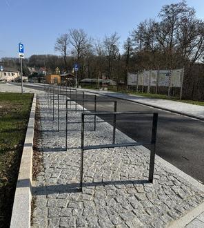 Der Parkplatz umfasst 44 Stellplätze, 3 Behindertenstellplätze, einen Reisebusstellplatz, 3 Stellplätze für Wohnmobile sowie 16 Fahrradanlehnbügel. Die Oberflächenbefestigung erfolgte in Abstimmung mit dem Denkmalschutz mit Natursteinmaterialien. Der Parkplatz ist mit Elektroladestation und Standardwerkzeug für E-Fahrräder, einem behindertengerechten WC sowie Strom- und Wasseranschluss für Wohnmobile ausgestattet. Den Service ergänzen Sitzgelegenheiten, Papierkörbe, Regenunterstand und verschiedene Informationstafeln über Rad- und Wanderwege sowie über die überregionalen Radrouten. Im Rahmen des Parkplatzausbaus wurde auch eine der im Ortskern vorhandenen Bushaltestellen an den Parkplatz verlegt und barrierefrei ausgebaut.