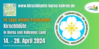 „Täglich rollten vom Kohrener Bahnhof zwei Waggons Kirschen in die Großstädte, wobei noch viele Körbe Kirschen per Post versandt wurden. Schon die Kirschblüte brachte tausende von Besuchern nach Gnandstein und Kohren, um sich an dem Blütenduft zu erfreuen.“ So heißt es in einer alten Beschreibung über die Kirschernte im Kohrener Land im Jahr 1923. An diese Tradition knüpft die Tourismusregion „Borna und Kohrener Land“ seit 2022 mit einer 14-tägigen Veranstaltungsreihe an. Erfreuen Sie sich an den Kirschblüten in und um Borna und Frohburg! Zahlreiche Akteure der Region haben für den Zeitraum vom 14. bis 28. April über 50 abwechslungsreiche Einzelangebote kreiert, die alle im Zusammenhang mit der wundersamen Zeit der Kirschblüte stehen.