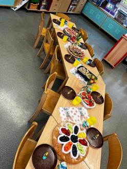 Seit Mitte März genossen die Kinder der Kita Spatzennest die milden Temperaturen und freuten sich auf das anstehende Osterfest. Es wurde gebacken, gebastelt und gesät – alles unter dem Thema „Ostern“. Am Mittwoch, den 27.03.2024 war es dann endlich soweit: der Osterhase besuchte die Kita und hatte für jedes Kind eine Kleinigkeit mit. Doch bevor die Suche im Garten beginnen konnte wurde erst einmal mit einem gemütlichen Osterfrühstück in den Tag gestartet.