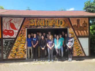 Am Montag, dem 10.06.2024, wurde der Parkplatz an der Kohrener Straße bunt, indem das alte Bushäuschen der ehemaligen Bahnstrecke verschönert wurde. Die Klasse 8d der Oberschule Frohburg bekam das Projekt, das Bushaus durch Graffiti in Kunst zu verwandeln. Der Grund hierfür war unter anderem, der Wander- & Pilgerstrecke ein neues Highlight zu geben. Dafür sind die Motive bewusst gewählt wurden. Die Autos und Motorräder erinnern an das alljährliche Dreieckrennen in Frohburg. Die Schüler haben außerdem versucht, eine Geschichte widerzuspiegeln, weshalb Teile der alten Eisenbahnstrecke darauf gezeichnet wurden. Sie wollten auch zeigen, dass man ohne viel Erfahrung ein Kunstwerk erzeugen kann. Einige Schüler mussten um die Gerüste schleichen, um an ihre Flächen heranzukommen, andere wiederum mussten warten, um in Ruhe ihr Kunstwerk vollständig zu beenden.