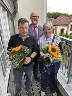 Ehrenamtspreisträger Mirko Deißner (links) zusammen mit Ehrenamtspreisträgerin Siegrid Barthel (rechts) und dem Bürgermeister Karsten Richter