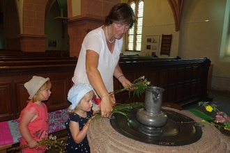 Auch in den Sommerferien findet ein buntes Programm in unserer Einrichtung statt. Der Startschuss wurde mit dem Johannistag am 24.06.2024 gefeiert. Die Krippenkinder besuchten die Kirche, wo die Gemeindepädagogin Frau Tetzner ihnen in einem Rundgang das Taufbecken, passend zum Hochfest der Geburt Johannes des Täufers zeigte. Dafür bedanken wir uns recht herzlich.
