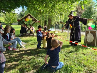 Nun starteten wir in das gemeinsame Sommerfest, bei dem die Vorschüler zunächst eine kleine musikalische Aufführung zeigten. Anschließend brachte ein Zauberer die Kinder mit einigen Tricks und viel Spaß zum Staunen. Die übrige Zeit wurde in entspannter Atmosphäre gespielt, geschminkt, nach Schätzen gegraben, geschlemmt und geplaudert.