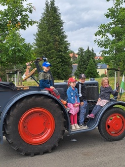Vor allem unsere vier Vorschulkinder freuten sich auf diesen besonderen Tag, denn für sie fand an jenem Freitag das Zuckertütenfest statt. Die erste Frage der Kinder am Morgen war: „Sind an unserem Zuckertütenbaum schon Zuckertüten gewachsen?“ Sofort nach dem gemeinsamen Frühstück machten wir uns auf den Weg in den Garten, um nachzusehen… und tatsächlich! Aus den anfangs bunten Knospen sind wir große Zuckertüten gewachsen. Die Freude war riesig. Gleich wurden sie „geerntet“ und die Kinder warfen einen Blick hinein. Nach dem Mittagessen folgte die nächste Überraschung: eine bunt geschmückte tolle Lanzfahrt mit dem Traktor nach Kohren-Sahlis. Gemeinsam mit ihren Eltern und ihrer Erzieherin Lena, sausten die Kinder mehrmals mit dem Schlitten die Sommerrodelbahn herunter. Während der Lanzfahrt genossen wir Getränke und Knabbereien. Vielen Dank für die tolle Organisation an die Eltern der Vorschulkinder. Zurück in Flößberg wurden wir schon von den anderen Kita-Kindern und deren Eltern erwartet und freudig begrüßt.