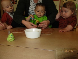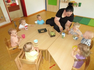 Die Kinder freuten sich über verschiedene Fingerspiele und Lieder und ahmten die Bewegungen nach.
