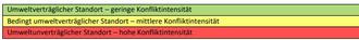 Die Darstellung der Umweltauswirkungen erfolgt in tabellarischer Form als Datenblatt (siehe Punkt 7.2.1). Die Bewertung der Umweltverträglichkeit der geplanten Nutzungsänderung erfolgt in drei Stufen: