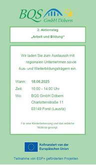 Am Mittwoch, den 18.06.2025 in der Zeit von 10 – 14 Uhr, findet zum zweiten Mal der Aktionstag „Arbeit und Bildung“ in der Charlottenstraße 11 in Forst statt.
