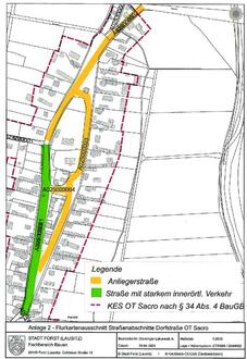 Erschließungsbeiträge werden nach den Bestimmungen des BauGB und nach Maßgabe dieser Satzung für die erstmalige endgültige Herstellung der Erschließungsanlage Dorfstraße im unbefestigten Bereich (Straßenabschnitte 03 und 04 gemäß Straßenkataster der Stadt Forst (Lausitz)) zur Deckung des nicht anderweitig gedeckten Aufwandes der Stadt erhoben.
