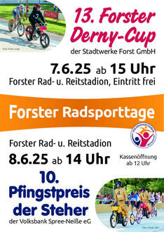 Am Pfingstwochenende, am 7. und 8. Juni knattern wieder die Motoren in Forst (Lausitz). Die Forster Radsporttage haben Tradition und beginnen am Samstag mit einer Premiere. Der 13. Forster Derny-Cup der Stadtwerke Forst GmbH wird ausgefahren im Rad- und Reitstadion. Am Sonntag, 8. Juni beenden die schweren Maschinen ihre lange Pause seit 2019 und starten für den 10. Pfingstpreis der Steher der Volksbank Spree-Neiße eG.