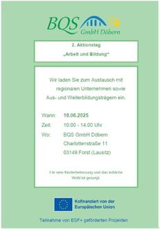 Am Mittwoch, den 18.06.2025 in der Zeit von 10 – 14 Uhr, findet zum zweiten Mal der Aktionstag „Arbeit und Bildung“ in der Charlottenstraße 11 in Forst statt.