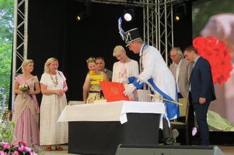 Gemeinsam mit der neuen 32. Forster Rosenkönigin Joanna I. kamen die Wermelskirchener und die Forster Bürgermeisterin dann am Samstagnachmittag im Oldtimer am Musikpavillon im Ostdeutschen Rosengarten an. Der Forster Schützenverein e.V. und der Karnevalsverein Forst-Sacro 1979 e.V. begleiteten traditionell den Einmarsch und leiteten damit die Eröffnung des Samstages ein.