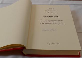 Den Eintrag im Goldenen Buch der Stadt Forst (Lausitz) zur Unterzeichnung bereitete die Forster Künstlerin Heike Mäbert in Kalligrafie-Schrift vor