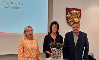 Die langjährige Mitarbeiterin der Stadtverwaltung, Petra Handreck, wurde feierlich verabschiedet – seit 1985 war sie für die Stadt Forst (Lausitz) tätig, zunächst als Sekretärin des Bürgermeisters, später im Baudezernat und ab 2007 als Büroassistentin und Sachbearbeiterin im Vorstandsbereich Stadtentwicklung und Bauen.