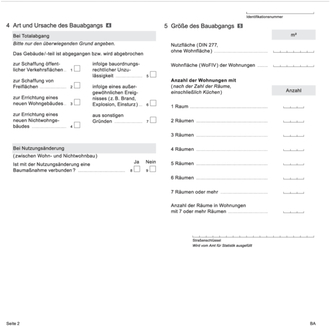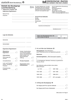 Beachten Sie bitte, dass der Abbruch von Wohngebäuden mit mehr als 1.000 m³ umbauten Raum bei der zuständigen Bauaufsichtsbehörde anzuzeigen ist. In diesen Fällen reichen Sie bitte den ausgefüllten Erhebungsbogen zur Bauabgangsstatistik nur bei der Bauaufsichtsbehörde ein.