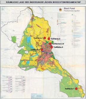 Auf acht Teilflächen im Gebiet der Stadt Forst (Lausitz) besteht aktuell Anlass zur dringenden Anpassung der Darstellungen im rechtswirksamen Flächennutzungsplan.