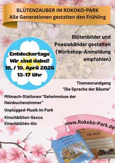 Die entstandenen Werke werden Teil einergemeinsamen Blüten-Installation im Park. Außerdem startet der neue Themen-Rundgang „Die Sprache der Bäume – Geheimnisse der Hainbuchen" mit Mitmach-Stationen für Kinder und Familien. Einekleine Kinder-Rallye lädt junge Gäste zum Entdecken der „Hainbuchenzimmer" ein. Unplugged-Musik im Park sowie ein kleiner Ausschank mit Kirschblüten-Secco und Ginsorgen für frühlingshafte Atmosphäre.