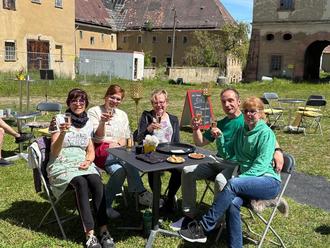 Besonders danken wollen wir diesmal insbesondere dem Engagement von Herrn Gunther Sachse (Borna) und Herrn Sebastian Weber (Kohren-Sahlis). Herr Sachse stellte uns spontan seinen Rasentraktor für die gesamte Parkfläche von 1,6 Hektar zur Verfügung, als er erfuhr, dass uns der vom Gutsbesitzer bzw. Schuman-Technik (Penig) bereitgestellte Hochgrasmäher aktuell nicht zur Verfügung stand. Herr Weber half ebenso bereitwillig, schnell und ohne Erwartung einer Gegenleistung bei der Reparatur einer Leckage im WC-Container. Dank dieser Personen, aller Mitglieder, Förderer und Gäste unseres jungen Vereins ist es möglich, dass wir den Park tatsächlich von Jahr zu Jahr in einen besseren Zustand versetzen. Auch das gastronomische Angebot der Kulturtenne entwickelt sich weiter, was u.a. die vielen tollen Rückmeldungen zum gelungenen und ausgebuchten Muttertags-Brunch bestätigten. Sie treffen im Rittergut Kohren-Sahlis nicht nur auf engagierte Lost-Place-Erlebnisgastronomie mit regionalen Qualitätsprodukten, sondern können sich in der verwunschenen Kulisse alter Bäume, historischer Putten und wertvoller Statuen vor Schloss Sahlis von erfahrenen Gästeführern auch zu Ihrem Wunschtermin faszinieren und inspirieren lassen.