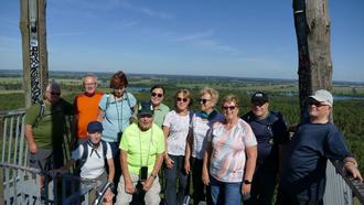 Mitglieder der Wandergruppe auf dem Aussichtsturm Götzer Berg.