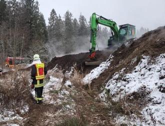 Vermutlich durch Selbstentzündung brannte ein Hackschnitzelhaufen auf einem Lagerplatz am alten Bahnhof Muldenberg. Bei Eintreffen beider Ortsfeuerwehren aus Muldenberg und Grünbach war bereits der Eigentümer mit Baggern im Einsatz um den ca. 400 m³ großen Haufen Schreddermaterial (Wurzeln, Gehölz, etc) zu trennen. Mit Hilfe der Feuerwehr wurden die aufgedeckten Glutnester abgelöscht. Nach Einschätzung der Einsatzleitung wurde der Einsatz am Abend zunächst für beendet erklärt. Mit Hilfe der Wärmebildkamera wurde der Haufen ständig kontrolliert. Da kein Wasser vor Ort war, wurde mit Hilfe eines ansässigen Bauers 10.000 l Wasser im Fasshänger geholt, der Rest wurde mittels Pendelverkehr des HLF`s (Hilfeleistungslöschfahrzeug) aus Grünbach bereitgestellt. Im Verlauf des Einsatzes wurden ca. 26.000 l Wasser aus 2 C-Rohren eingesetzt. Vielen Dank an den Forstbetrieb Ferdinand Schön in Hammerbrücke, der die Wasser-Bereitstellung hervorragend unterstützte.