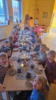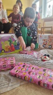 Zu unserer Weihnachtsfeier konnten wir dann die verschiedenen Plätzchen genießen. Im Anschluss gestalteten einige Kinder ein unterhaltsames Programm aus Liedern und Gedichten. Danach durften wir unsere Gruppengeschenke auspacken und bestaunen. So konnten wir uns über ein tolles Barbiehaus, ein Radio und verschiedene Spiele freuen.