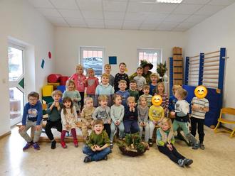 Ihr könnt Euch gar nicht vorstellen, wer uns außerdem im Kindergarten besuchte - das Moosweibel (Frau Schlenker, Willis Oma). Sie erzählte viel über die Moosmännle und ihre Familien. Die Mutigen unter uns durften auch einmal in einen Moosmantel schlüpfen.