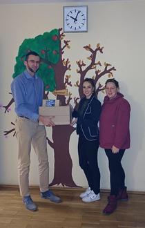Herr Dolla (Ecovis aus Falkenstein) überreichte Frau Luderer (Schulsekretärin, rechts im Bild) und Frau Bitterbier (Schulleiterin, mittig im Bild) die vollen Kartons für die Sammelaktion. Seine Tochter besucht die 4. Klasse an unserer Grundschule.