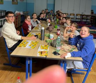 Am Freitag, dem 22. November, trafen wir uns am Abend zu einer Lesenacht. Gemeinsam mit Herrn Schmidt und Frau Jähn wollten wir Viertklässler in der Schule übernachten. Nachdem wir unsere Schlafplätze hergerichtet hatten, gab es zur Stärkung Pizza.