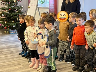 Der Nikolaus war pünktlich am 6.12. bei uns im Kindergarten und hat jedem eine kleine Nascherei gebracht.