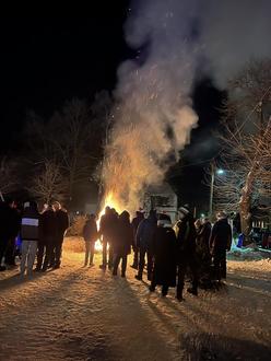 Und dann kamen die Scharen von feierlustigen Grünbachern und deren Freunde aus Nah und Fern mit ihren alten trockenen Tannenbäumen zum Feuerwehrhaus. Ein letztes Mal durfte dann der Weihnachtsschmuck, der uns in der Weihnachtszeit so viel Wärme und Freude in unsere Wohnzimmer zauberte, in den Flammen der Feuerstelle glühen.