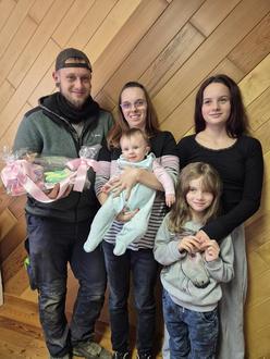 Elara Jauch mit ihren Eltern Sebastian und Sabina und ihren beiden Schwestern Mila und Lucy
