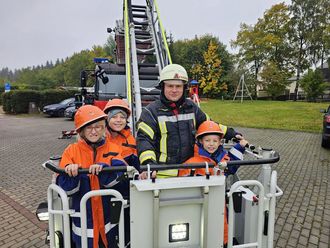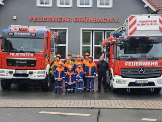 Am Samstagmorgen gab es um acht Uhr für alle Frühstück, mit frischen Semmeln der Bäckerei Frisch und danach ging es gemeinsam ans Gerätehaus, denn da warteten zwei Kameraden der Feuerwehr Klingenthal mit deren Drehleiter auf uns. Nach einer Erklärung des Fahrzeugs durften alle die wollten einmal hochhinaus und einen Blick von oben auf Grünbach genießen, leider war der Weitblick durch Nebel getrübt. Aber definitiv ein Highlight für alle.