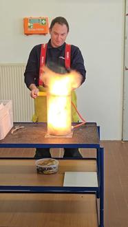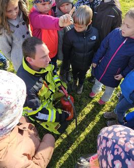 Wie bereits in der Vergangenheit hatte auch in diesem Jahr die dritte Klasse der Grundschule danach einen Exkursionstag in der Feuerwehr. Also ging es nach erfolgreicher Evakuierungsübung für die Drittklässler und deren Lehrerin im Feuerwehrauto mit ins Feuerwehrhaus. Dort angekommen wurde nach einer kurzen Frühstückpause die Klasse in drei Gruppen geteilt und auf die Stationen verteilt. So übten die Kinder an der einen Station das Absetzen eines Notrufs und erstaunlicherweise war nicht allen die Rufnummer 112 bekannt, gut dass wir das üben können. An der zweiten Station wurde ihnen eine Staubexplosion vorgeführt und als drittes wurde den Kindern noch unser HLF (unser großes Feuerwehrfahrzeug) gezeigt und erklärt. Nachdem jede Gruppe an jeder Station angekommen war, gab es noch eine weitere Pause und danach ging es mit allen Kindern nach draußen auf die Wiese. Dort zeigten wir ihnen noch, was passiert, wenn man einen Fettbrand versucht mit Wasser zu löschen und wie man einen Feuerlöscher benutzt. Zum Abschluss wurden die Kinder und ihre Lehrerin wieder mit den Feuerwehrautos zur Schule gefahren, alles in allem ein gelungener Vormittag und für die Kinder sicher ein bleibendes Erlebnis.