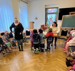 Leider gibt es ganz viele Menschen, denen es nicht so gut geht wie uns. Deshalb beteiligten wir uns Anfang November an der Aktion „Weihnachten im Schuhkarton‘‘. Jedes Kind half mit, den von uns mit Weihnachtspapier beklebten Schuhkarton für einen Jungen und ein Mädchen zu füllen. Am Dienstag, dem 11.11.25, brachten wir ihn dann zur Annahmestelle ins Pfarrgemeindehaus.