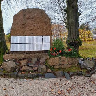 Bürgermeister Ralf Kretzschmann legte zum Volkstrauertag am 19. November im Namen der Gemeindeverwaltung Grünbach am Ehrenmal für die Gefallenen des Ersten und Zweiten Weltkrieges ein Blumengebinde nieder.