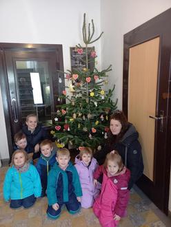 Die Kinder unserer Kindertagesstätte „Rappelkiste“ schmückten den Weihnachtsbaum im Rathaus mit selbstgebastelter Dekoration.