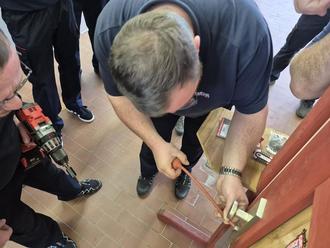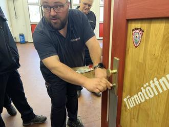 Nicht immer ist die Zerstörung der teuren Eingangstür die richtige Entscheidung, wenn am Hinterhaus ein Fenster nur gekippt ist. So trainieren die Grünbacher Frauen und Männer an diesem Vormittag den Zugang durch Türen mit sogenannten Manipulationsmitteln. Das können der bekannte Dietrich, oder aber auch die Spiralnadeln oder das Schließblech sein. Diese Einsatzmittel können dann zum Erfolg führen, wenn die Türen nicht verschlossen sind und nur in das Schloss gefallen sind. Anders sieht es bei einer verschlossenen Tür aus.