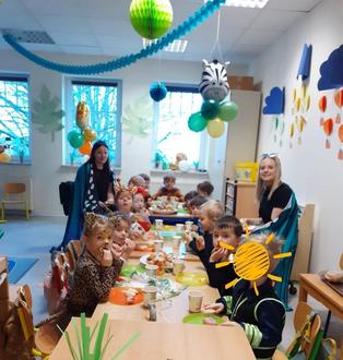 Mit dem Faschingsdienstag kam dann auch der Abschlusstag unseres Projekts „Tiere der Erde“ und alle Kinder waren eingeladen, als Tiere, Piraten, Prinzessinnen und Superhelden verkleidet in die Rappelkiste zu kommen. Wir begannen den Tag mit einem gemeinsamen Frühstück in den Gruppen und ganz vielen Pfannenkuchen. Dann startete unsere Faschingsparty im Turnraum. Da Tanzten wir und präsentierten unsere Kostüme, es gab ein Fotoshooting und am Ende eine lange Polonaise.