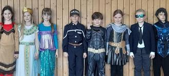 Zwischendurch besuchten uns die Hortkindern und präsentierten ebenfalls ihre sehr kreativen und bunten Kostüme. Später feierten diese eine große Faschingsparty mit Musik, Tanz und Spielen in der Turnhalle. Mit Tanz und ganz viel Nascherei ging dieser kunterbunte Vormittag langsam zu Ende.