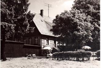 De Westantenne duem Dach is akkerat Richtung Ochsenkopf ausgericht. De Liechestühl sei belecht und unterm Sonneschirm warten a zwee Leit. Wahrscheinlich auf ´n Kellner. Der kam seinerzeit, in de 60er Goahr früher oder schpeter scho emol vorbei. Heit kimmt kaaner mehr. Aber vielleicht wird´s bal wieder. Hoffen mr is Beste!