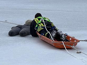 Verschiedene Methoden zum Begehen der Eisflächen wurden erläutert und auch praktisch geübt. Bei allen Übungsformen geht es aber immer um das Eine - die Vergrößerung der Auftrittsfläche durch flaches Liegen, durch Hilfsmittel wie Leitern und Schleiftragekorb. Unser Schlosserpuppe Karl (eine ausgestopfte Übungspuppe) musste sich bei den Rettungsübungen einiges gefallen lassen, aber immer wurde sie gut ans Ufer gebracht. Auch eine Crashrettung wurde geübt. Dort missachtet man gut gesichert jegliche Flächenvergrößerung, um schnell an den zu Rettenden zu gelangen, egal ob man dabei einbricht oder nicht. Heute hat das Eis gehalten, aber alle waren durch die zum Teil sehr anstrengende Übung gut durchgewärmt.