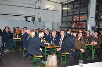 Unter den Augen von vielen Ehrengästen, dem Bürgermeister der Gemeinde und der deutschen Delegation, angeführt von Bürgermeister Ralf Kretzschmann und Gemeindewehrleiter Michael Breitfeld blickte der Kommandant und seine Referenten auf ein ereignisreiches Jahr zurück. Mit einem Eigenanteil von über 170.000 € errichteten die Feuerwehrleute am neuen Feuerwehrhaus ein modernes Katastrophenschutzlager. Das Herzstück dort ist die hoch moderne Atemschutz-Tausch-Station. Der Neubau bildet den finalen Bauabschluss am erst im letzten Jahr eingeweihten neuen Feuerwehrhaus und wurde mit über 2.400 Stunden Eigenleistung in nur 2,5 Monate durch die Kameradinnen und Kameraden gebaut!