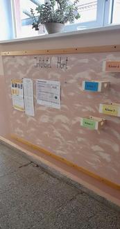 In das zweite Schulhalbjahr starteten wir mit einigen Veränderungen. Jetzt gibt es eine Tafel wo wir uns in den verschiedenen Bereichen anheften können. Damit ist für alle gleich sichtbar, wo sich die Kinder gerade befinden. Die Umstellung fiel den Kindern leicht und alle sind mit Begeisterung dabei. Ebenso neu ist für die aktuellen Geschehnisse eine große Infotafel.