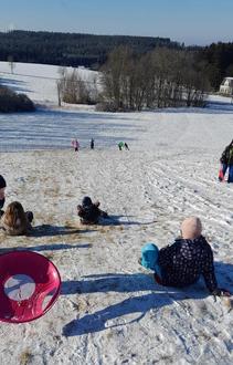 Endlich waren sie da - die langersehnten Ferien. Für uns Erstklässler gab es das 1. Mal ein Zeugnis. Alle waren aufgeregt, denn die Ferienspiele versprachen viel Tolles. Montags wurde gewandert und am Moritzel gerodelt. Das machte viel Spaß und wir genossen den letzten Schnee.
