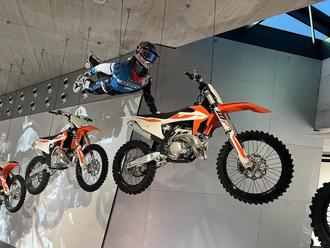 Im Inneren angekommen, schlängelt sich ein ansteigender Rundweg, ebenfalls angelehnt an den Motorcross, hinauf bis unters Dach und wieder hinab. Vorbei an der Geschichte der Motorräder von KTM die sich jüngst 2024/2025 in einer schweren finanziellen Krise befanden und die sich davon nun super erholt haben! Neuanstellungen zeugen vom wirtschaftlichen Aufschwung des Unternehmens unter indischer Geschäftsführung der Bajaj Mobilitiy AG.