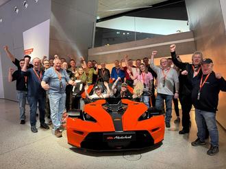 Der Rundgang durch das Center weckte wahnsinnige Emotionen. Wer sich auf die KTM RC16 oder die Tourenmaschine KTM Super-Adventure setzte, bekam Lust vielleicht doch mal wieder Motorrad zu fahren, auch wenn die Preise dieser Maschinen bei etwa 25.000€ lagen. Das abschließende Gruppenfoto unserer Reisgruppe aus dem Mühlviertel fand in einem Rennsportwagen der Oberklasse, auch von KTM gebaut, statt.