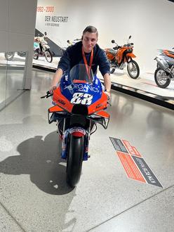 Unser Guide war absolut kompetent und konnte sowohl zur Historie als auch zur aktuellen Rennszene stets Auskunft geben. Der Rundweg führte vorbei an der Rahmen- und Tankentwicklung. Die Motoren, aufgereiht wie am Schnürchen wurden immer größer und lagen im größten Aggregat bei 190 PS! Entwicklungs- und Herstellungskosten für einzelne Bauteile lagen in Summe dann bei einem Rennmotorrad bei fast 500.000€- einer halben Million! Im Rennsport liegen die Kompetenzen von KTM bei den Moto-Crossmaschinen. Aber auch in der Moto-GP Rennserie haben sie wieder Fuß gefasst. Nach dem ersten Rennwochenende 2026 führt KTM sogar!
