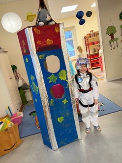 in der letzten Ausgabe berichteten wir euch von unserem Weltraum- Projekt. Am Faschingsdienstag fand als Abschluss unsere Weltraumparty statt. Nach einem ausgiebigen Frühstück konnte unser Flug ins All auch schon starten. Die außerirdischen Erzieherinnen gingen mit uns in den galaktisch geschmückten Turnraum, der zum Tanzen, Feiern und fröhlich sein einlud. Bei einer Modenschau präsentierten sich alle Tiere, Einhörner, Polizisten, Superhelden und und und. Sogar zwei Astronauten feierten mit. An einer Bar konnte sich jedes Kind seinen eigenen Cocktail mischen – lecker. Viel zu schnell verging der Vormittag. Doch viele von uns feierten am Nachmittag weiter.